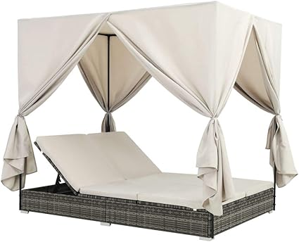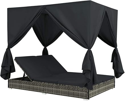 Festnight Chaise Longue Transat Bain De Soleil En Resine Tressee Avec Rideaux Resine Tressee Pour 2 Personnes 197 X 140 X 180 Cm Gris Amazon Fr Jardin