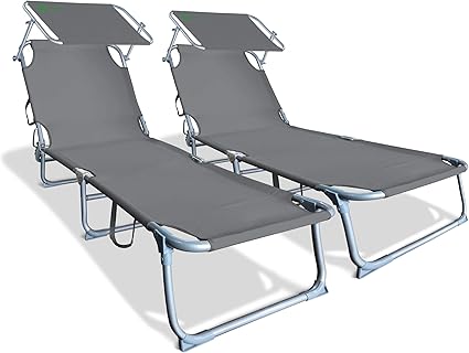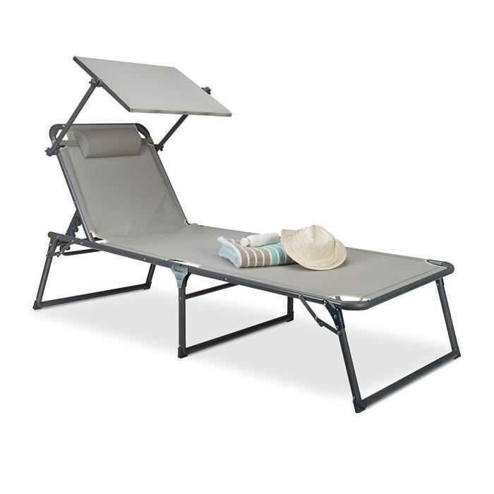 Vous ne devrez ainsi pas porter de chapeau ou de lunettes de soleil. Elles ne seront pas endommagées si vous les laissez à lextérieur lorsquil pleut. Chaise longue en aluminium de haute qualité avec pare-soleil intégré.