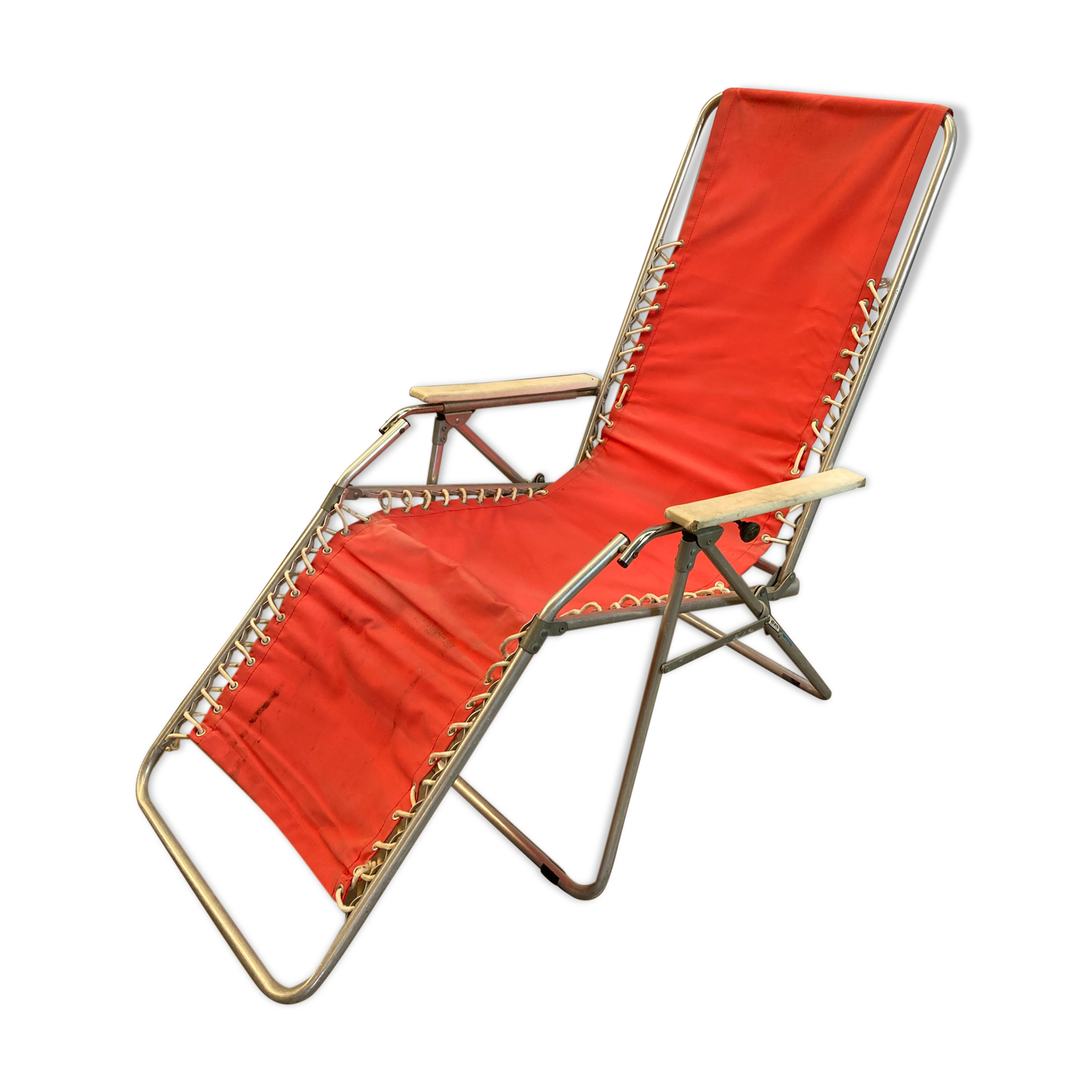 Transat Vintage Chaise Longue Metal Et Tissu Rouge Selency