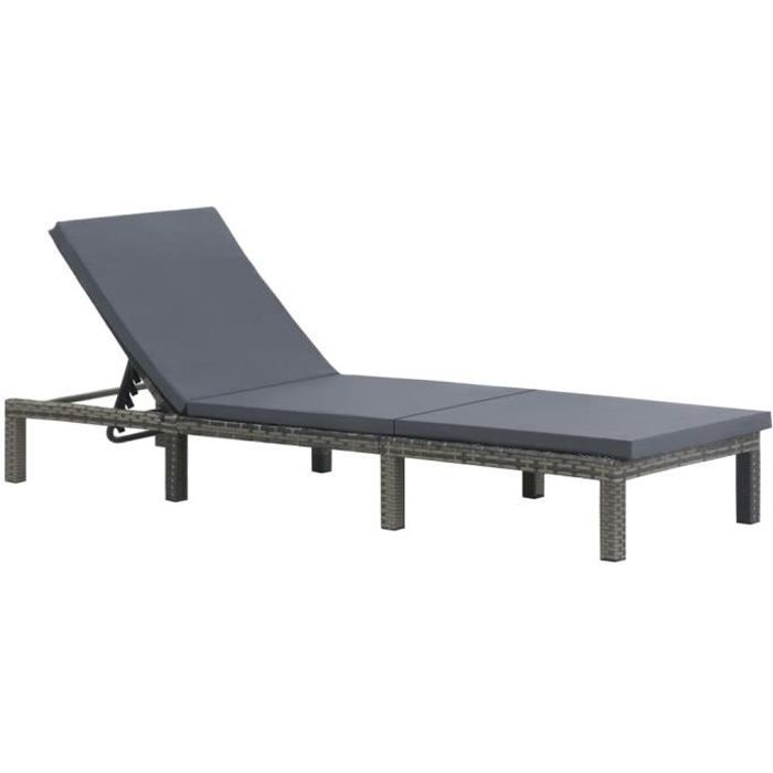 Chaise Longue De Jardin Chaise Longue Pliante Bain De Soleil Transat Avec Coussin Resine Tressee Anthracite Cdiscount Jardin